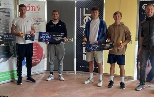 Ein ganz anderes Bild zeigte sich bei den Herren. Hier waren es ausschließlich die vier topgesetzten Spieler, die die Runde der letzten Vier und somit den Titel unter sich ausmachten. Mit dem auf Nummer eins geführten Lenny Hampel und Patrick Ofner, der Nummer zwei des Turniers, standen sich letztlich im Finale auch die absoluten Titelfavoriten gegenüber. Hierbei zeigte Hampel von Beginn an starkes Grundlinientennis und begeisterte mit seiner Power. Kompromisslos gewann der Wiener den ersten Durchgang mit 6:1 und zog auch im zweiten Satz schnell mit 3:0 davon. Dann folgte jedoch die beste Phase von Ofner, der zu Juniorenzeiten zu den besten Spielern der Welt zählte. Mit cleveren Bällen gelangen ihm zwei Games in Folge. Ein umkämpftes Aufschlagspiel Hampels zum 4:2 und das darauffolgende Break war jedoch die endgültige Entscheidung. Hampel, aktuell die Nummer 761 der Welt, gewann letztlich souverän mit 6:1, 6:2 und sorgte damit für einen Wiener Heimsieg. Bereits zuvor war die Doppelkonkurrenz entschieden worden, in der sich das auf Position zwei gesetzte Duo Emil Pristauz und Niklas Rohrer in die Siegerlisten eintragen konnten.