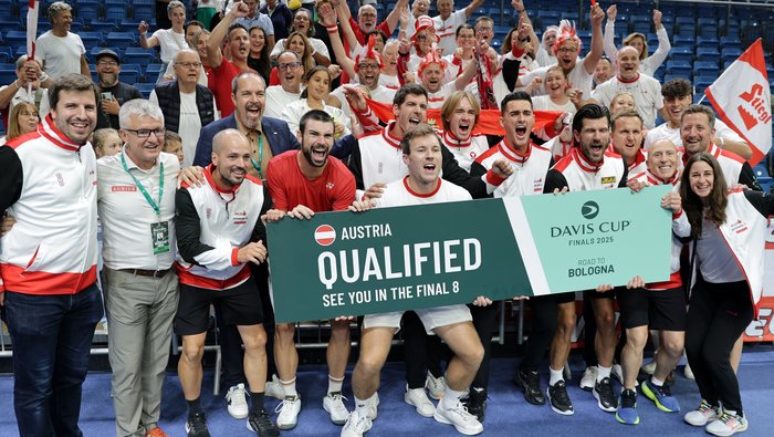 Für weitaus weniger Schwitzen auf den rot-weiß-roten Teambänken sorgte danach der Auftritt von Ofner. Mit einer 1:0-Führung im Rücken bot der Steirer eine solide Leistung, sein Erfolg war nie gefährdet. Einzig bei 0:1 und 15:40 musste Österreichs Nummer eins früh zwei Breakchancen zunichtemachen – die ersten und letzten in der Partie. Am Ende standen imposante 97 Prozent gewonnene Punkte über seinen ersten Aufschlag (32 von 33). In beiden Durchgängen reichte ein Break zur Entscheidung: im ersten Satz zum 3:2, im zweiten Abschnitt sogleich im ersten Game. „Es war ein ganz solides Match. Ich habe bei meinem Aufschlag nicht viel zugelassen und dann jeweils ein Break zu Ende gespielt. Es ist trotzdem nie einfach, wenn die Fans für den Gegner sind, vor allem hatte er nichts zu verlieren und konnte frei aufspielen. Also das kann schon mal ein Punkt sein, wenn es ein paar Mal für ihn läuft oder ihm ein paar Mal bei wichtigen Punkten was gelingt (dass es dann knapper werden könnte; Anmerkung). Aber das war heute nicht so oft der Fall.“ Den Unterschied habe für ihn gemacht, „dass ich meine Servicegames etwas konstanter gespielt habe“, lautete das zufriedene Fazit Ofners. Dem es in der vollen Halle viel Spaß machte: „Das war richtig gut, denn die Stimmung war echt mega. Die Fans waren super, auch wenn es für den Gegner war. Trotzdem geil, wenn so eine gute Stimmung ist.“