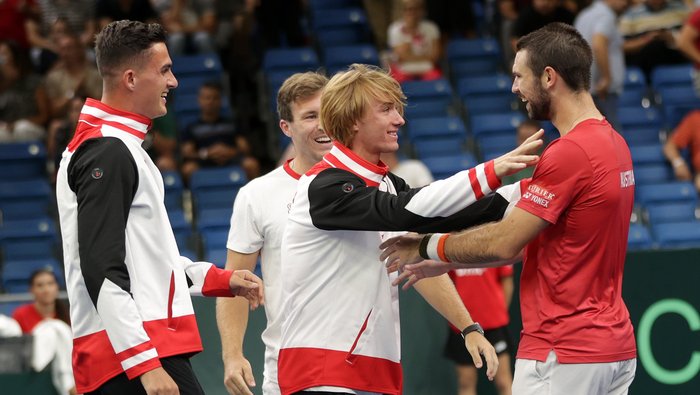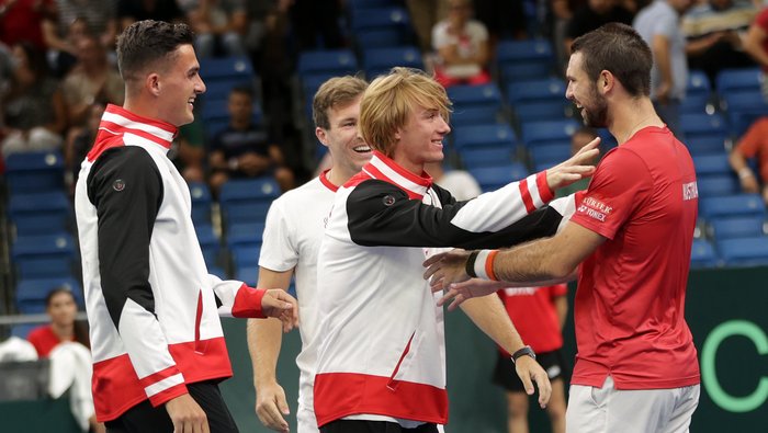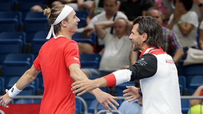 Vor Ofner zog Melzer den Hut: „Er hat es konsequent durchgespielt, eine solide Leistung gebracht – nicht mehr als notwendig war. Ein gutes Pferd springt eben nur so hoch wie es muss. Und das hat er heute erledigt: Zweimal ein frühes Break geschafft, bei seinem Aufschlag unantastbar. Da kann man als Kapitän sehr zufrieden sein. Da hatte ich jetzt nie das Gefühl, dass da was anbrennen kann.“ Weiteren Nervenkitzel möchte sich Melzer gerne ersparen: „Ich hoffe natürlich, dass es morgen von den Burschen gleich im Doppel ausgemacht wird. ‚Alex’ und ‚Luci’ haben hier gut trainiert, gehen definitiv als Favoriten in die Partie. Deswegen erhoffe ich mir, dass es morgen nach dem dritten Spiel 3:0 steht – und dann haben wir das erledigt, wofür wir hergekommen sind.“
