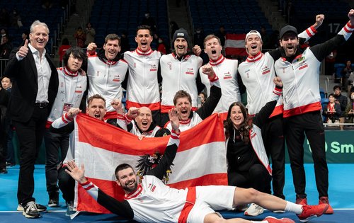 Groß war und ist natürlich die Freude im Österreichischen Tennisverband, zum sechsten Mal ein Viertelfinale beim traditionsreichen Nationenwettbewerb erreichen zu können – allen voran bei Präsident Martin Ohneberg, der die heimische Auswahl vor Ort an beiden Spieltagen tatkräftig unterstützte. „Die Spannung war nicht zu überbieten. Es war eine tolle Teamleistung, eine super Stimmung in der Halle. Man sieht einfach bei den letzten Davis-Cup-Spielen, dass das wirklich ein geformtes Team ist, in dem alle für den Erfolg kämpfen. Es war ein großes Tennisfest, eine Riesenfreude und ein tolles Ergebnis. Jetzt wird natürlich gefeiert. Wir sind stolz auf unser Team. Das ist was ganz Besonderes. Im September gibt es dann ein Heimspiel in Österreich, darauf freuen wir uns.“ So erging es auch Melzer: „Ein Heimspiel um Bologna – was wollen wir mehr? Es wird hoffentlich ein Tennisfest werden und wir schaffen es wieder zum Finalturnier. Die Chance ist auf alle Fälle da, und wir werden sie, so gut es geht, nützen.“ Sich neuerlich für die Top Acht zu qualifizieren, wäre für ihn „natürlich unglaublich. Alleine wieder die Chance zu haben, ist sensationell. Wir sind in einer Weltsportart.“ ÖTV-Geschäftsführer Wirtschaft Thomas Schweda zeigte sich ebenfalls „richtig stolz auf unser KURIER Austria Davis Cup Team, angeführt von unserem Sportdirektor Jürgen Melzer. Jetzt freuen wir uns darauf, für die österreichische Tenniscommunity einen heißen Tennisherbst zu organisieren, mit einem Heimspiel gegen eine starke Nation wie Belgien oder Bulgarien. Es ist für uns eine große Sache, wieder unter den besten 15 Nationen der Welt stehen. Wir werden gleich Montag Kontakt mit den Landesverbänden und potenziellen Veranstalter:innen aufnehmen, ob es Interesse gibt, diesen Länderkampf um einen Platz beim Finalturnier auszutragen.“