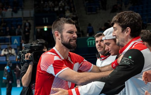 Vor den Augen auch von ÖTV-Präsident Martin Ohneberg, der das KURIER Austria Davis Cup Team vor Ort unermüdlich unterstützte, lief es im zweiten Match aus rot-weiß-roter Sicht bedeutend besser. Rodionov startete stark, zog sein Spiel ganz konsequent durch, konnte sein frühes Break zum 2:1 zur Satzführung konservieren. Der zweite Durchgang gestaltete sich deutlich offener und dauerte allein gut 65 Minuten, Österreichs Nummer zwei konnte aber nach hartem Kampf eine 1:3- und 3:5-Hypothek aufholen und mit vier Spielgewinnen am Stück den wichtigen Sieg ins Trockene bringen. „Ich bin froh, dass ich es geschafft habe, ein sehr, sehr gutes Spiel zu zeigen und für Österreich hier auf 1:1 zu stellen. Das macht unsere Ausgangsposition für morgen natürlich um einiges einfacher. Wir sind bereit und werden die restlichen zwei Punkte morgen holen“, gab sich Rodionov überzeugt. Der 26-Jährige hatte Österreich schon im Vorjahr den entscheidenden Punkt zur Finalturnier-Qualifikation beschert und entwickelt sich immer mehr zum Davis-Cup-Spezialisten: „Es scheint so, dass ich im Davis Cup immer sehr, sehr gut spiele. Ich habe auch schon einige Spiele hinter mich gebracht, und ich glaube einfach, dass ich mit der Erfahrung, die ich jetzt habe, dieses Format sehr genieße. Es ist eine große Ehre, jedes Mal für mein Land spielen zu dürfen, und natürlich bin ich auch dadurch extra motiviert.“