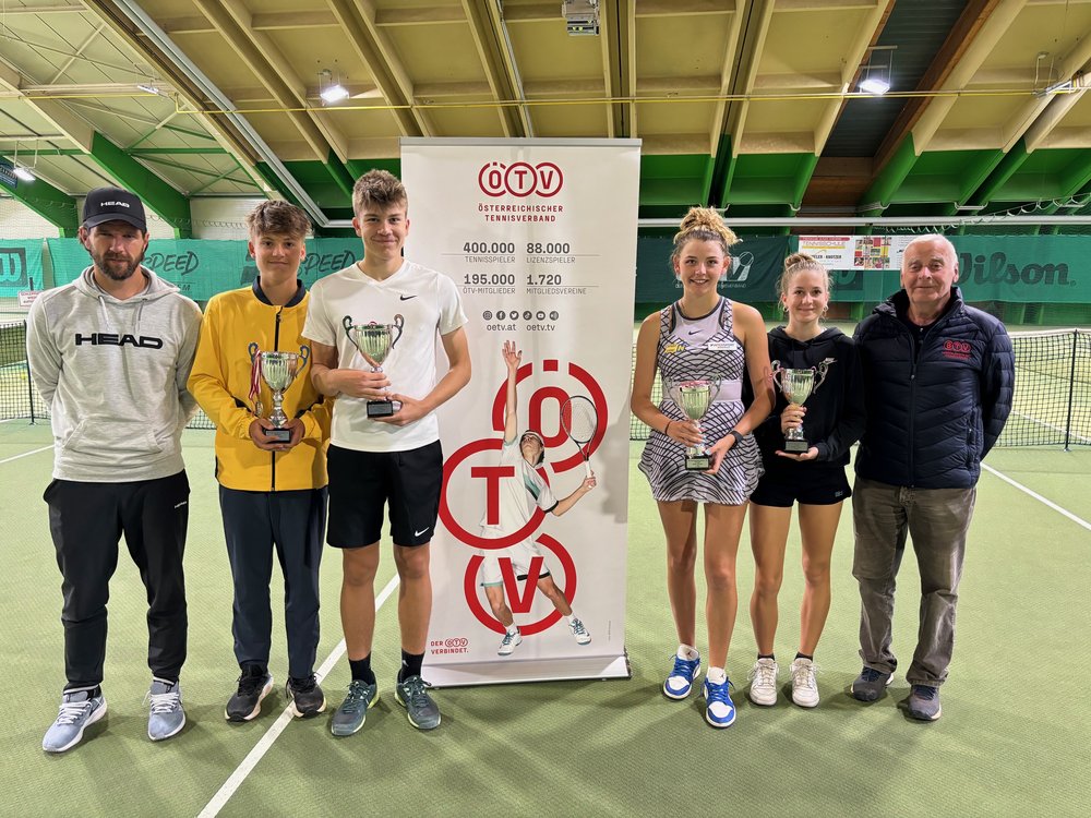In den Doppelkonkurrenzen wurden die Sieger:innen indes bereits mittwochs gekürt – ob des schlechten Wetters allerdings in der Halle. Bei den Jungs setzten Simon Gruber und Peter Kieslinger, nach ihrem ersten ITF-Doppeltriumph aus der Vorwoche in Wien, ihren tollen Erfolgslauf fort. Die beiden Tiroler konnten sich nach einem knappen Halbfinalsieg über die topgesetzten Gschiel/Maislinger auch im Endspiel gegen das NÖTV-Duo Bastian Berenz und Elias Trausmuth mit 6:3, 6:1 behaupten. Bei den Girls gewannen Lana Srejic (WTV) und Avril Illetschko (NÖTV) alle ihre drei Partien im Match Tiebreak, den Titelkampf bloß hauchdünn mit 7:6, 4:6, 11:9 gegen Corciova/Semmelmeyer. All das vor den Augen von ÖTV-Sportdirektor und -Davis-Cup-Kapitän Jürgen Melzer.