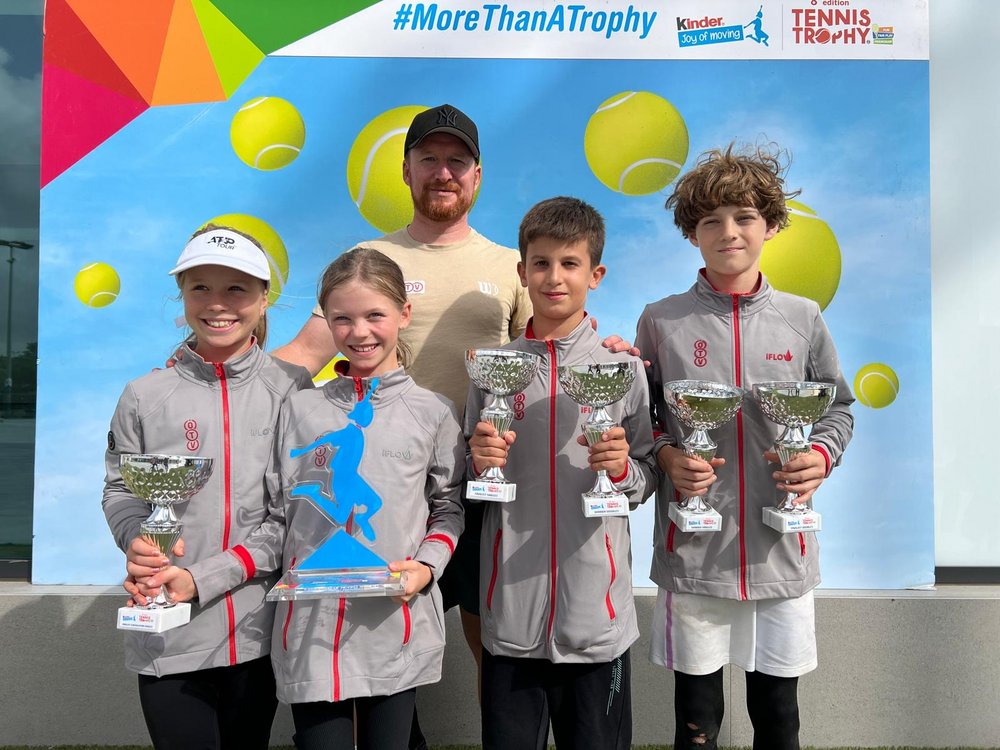 Die erfolgreichen ÖTV-Kids beim internationalen Masters der Kinder Joy of moving Tennis Trophy, von links nach rechts: Ella Giulia Eder, Anastasia Weiler, ÖTV-U10-Nationaltrainer Martin Kondert, Teodor Mihai Vasile, David Richter.