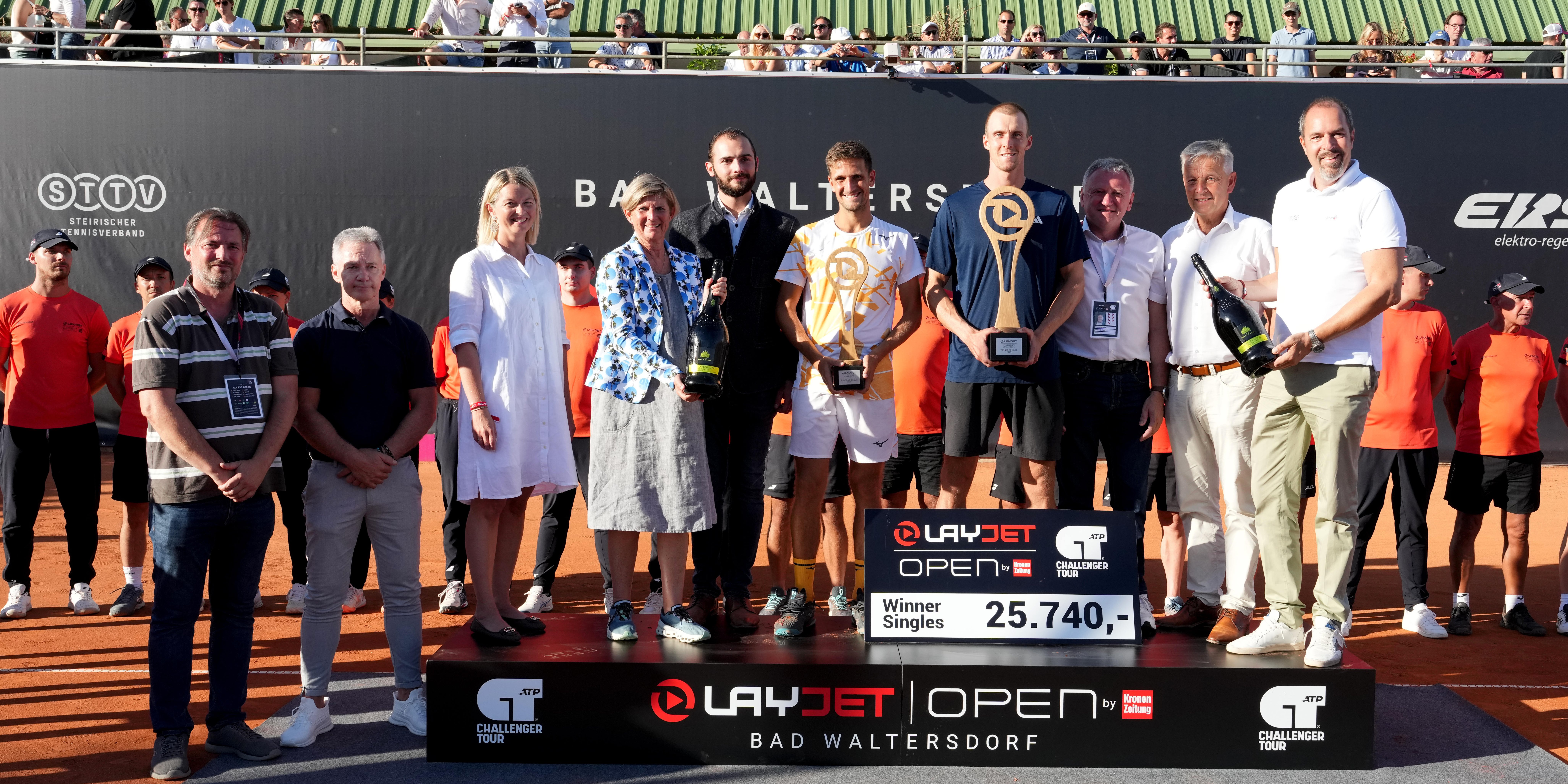 Der ungesetzte Jan Choinski hat sich am Sonntag die LAYJET-OPEN im Sportaktivpark Bad Waltersdorf gesichert. Im Endspiel am Nachmittag besiegte der Brite (ATP 227) die Nummer zwei des Turniers, den Tschechen Vít Kopriva, der im ATP-Computer auf Platz 102 und damit um exakt 125 Ränge vor seinem Finalgegner liegt, mit 7:5, 6:4. Es ist für ihn der sechste und bisher größte ATP-Challenger-Titel in seiner Karriere, der zweite in Österreich nach jenem bei den NÖ Open powered by EVN in Tulln 2024.