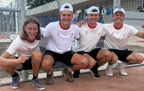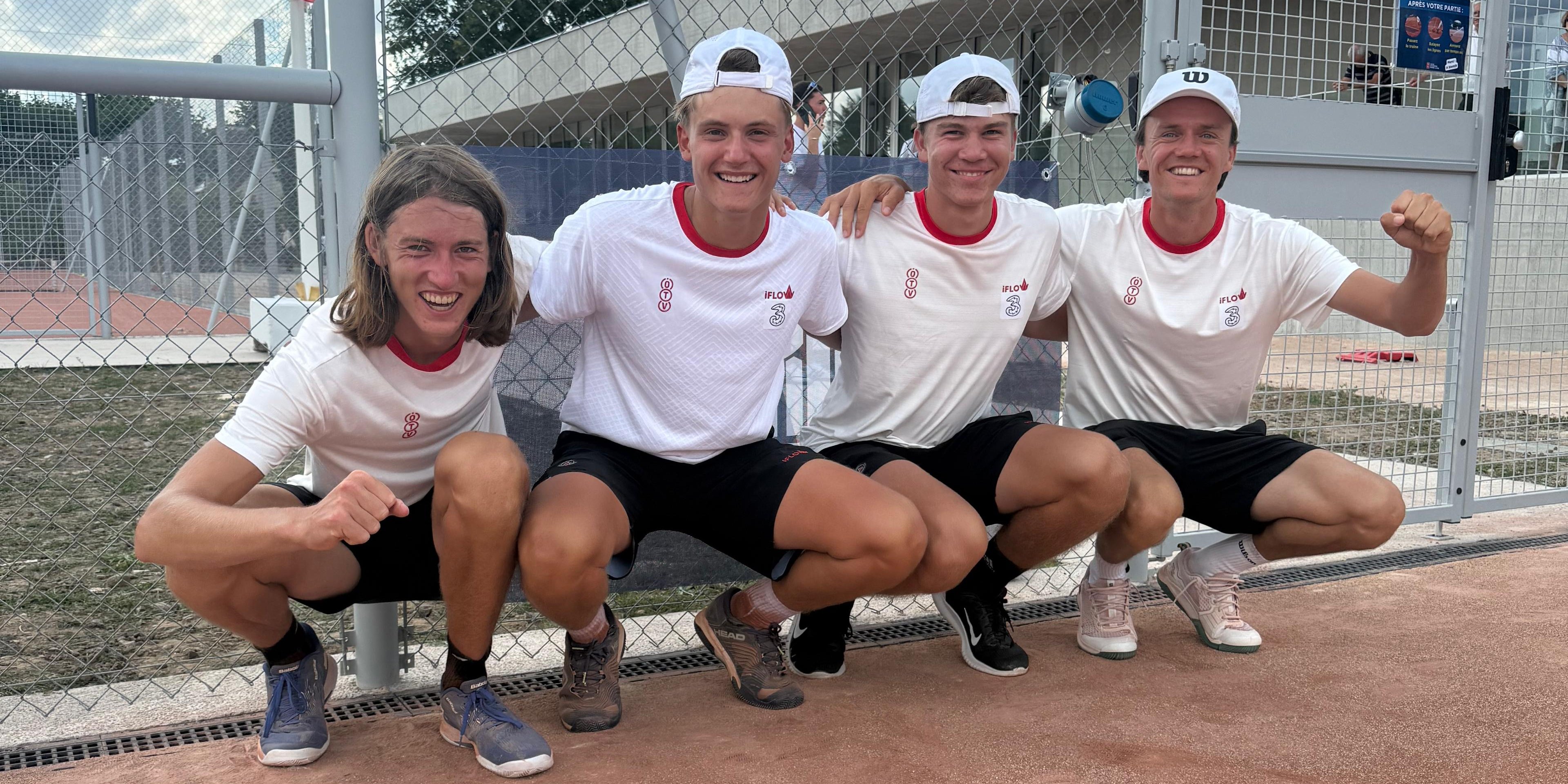 Thilo Behrmann, Florian Zimmer, Alexander Gschiel und Betreuer Sebastian Beutel führen Österreichs U18-Team zum sensationellen Titel bei den Tennis Europe Summer Cups in Vichy – und lösen das Ticket fürs große Europa-Finale!