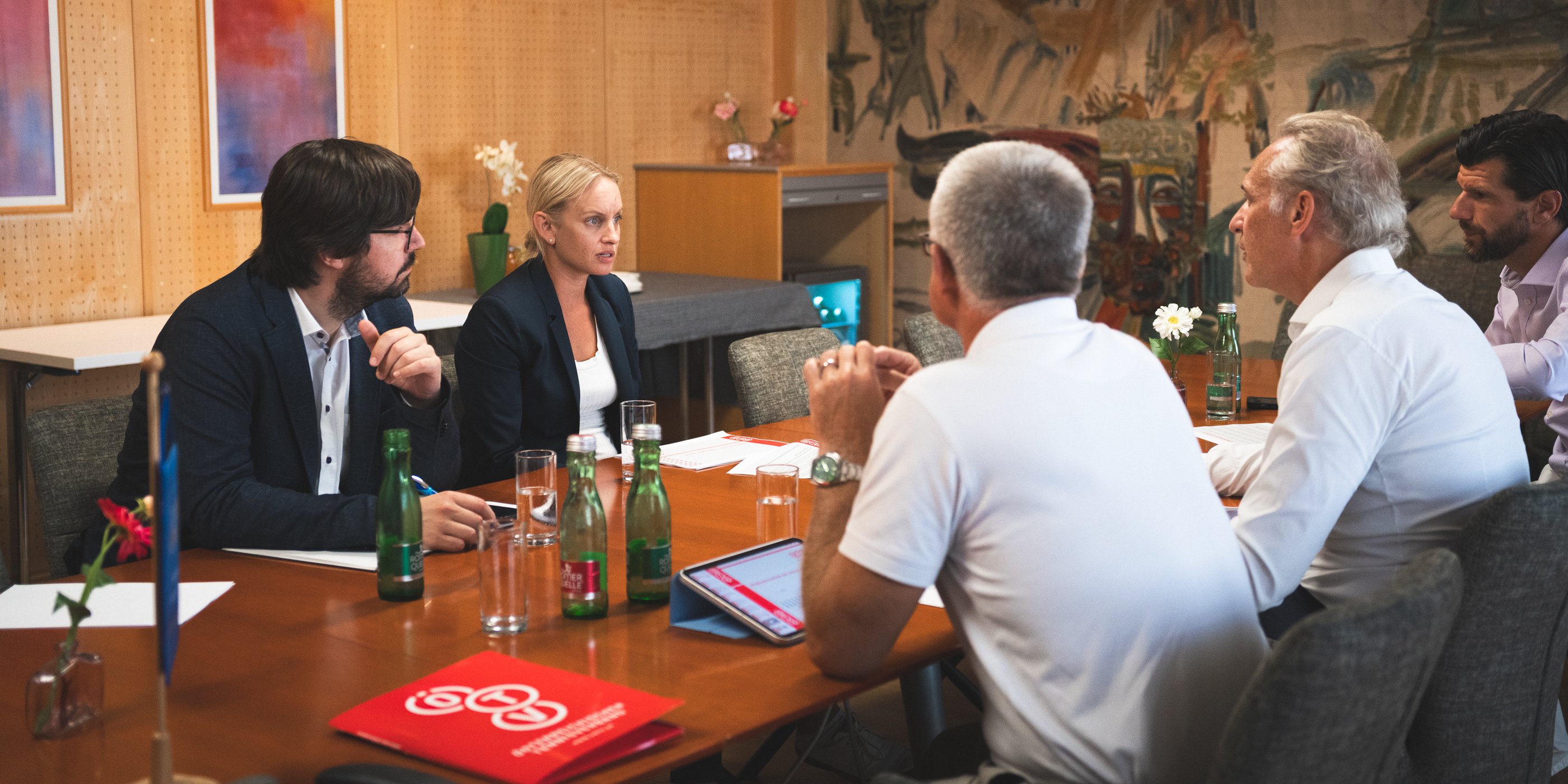 Am 28. Juli fand ein konstruktives und freundliches Arbeitstreffen zwischen Staatssekretärin MMag. Schmidt, BMKÖS-Sportreferent Mag. Mirza Buljubasic sowie ÖTV-Präsident Mag. Martin Ohneberg, ÖTV- Sportdirektor Jürgen Melzer und ÖTV- Geschäftsführer Wirtschaft, Thomas Schweda statt. Dabei wurden die Aufgaben und Ziele des ÖTV erklärt, die BMKÖS Förderungen und die kommenden Einsparungen angesprochen. Neben der Vorstellung des nationalen Turnierangebots und der Ausbildungsinitiativen war es dem ÖTV sehr wichtig die Staatsekretärin und ihr Team über die große Infrastrukturproblematik im Tennissport, die geringe Hallenkapazitäten für den Breiten – und Spitzensport, aber auch über die Situation des ÖTVs in der Südstadt aufzuklären.