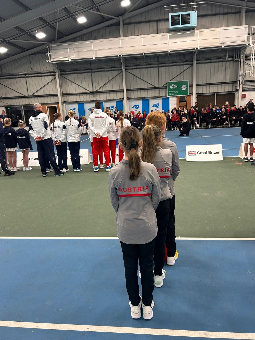 Das rot-weiß-rote Dreimäderlhaus traf in der ersten K.o.-Runde am Freitag zunächst auf Finnland. Im Kontrast zu den Herren im Davis Cup gab es für die Girls beim 0:3 gegen die Skandinavierinnen nicht viel zu holen. Hiermit ging es um die Plätze fünf bis acht. Dabei glückte am Samstag ein äußerst lobenswerter 2:1-Erfolg gegen die Gastgeberinnen aus Großbritannien, der nach 0:1-Rückstand errungen wurde. Angleitner/Buchegger sorgten durch ein knappes 10:7 im Match Tiebreak des alles entscheidenden Doppelmatches für diesen schönen Siegmoment. Im Duell um Platz fünf setzte es am Sonntag abschließend eine 0:3-Niederlage gegen Griechenland. „Ich glaube, dass man mit dem sechsten Platz in Summe zufrieden sein kann. Das Niveau war gut, und es war für unsere Mädchen eine tolle Erfahrung, das Spitzenniveau in Europa gesehen zu haben. Daraus können sie auch wertvolle Schlüsse fürs Training ziehen“, zeigte sich Betreuer Hutterer überzeugt.