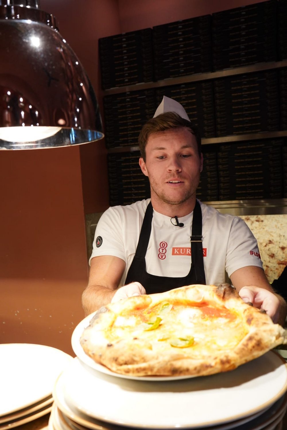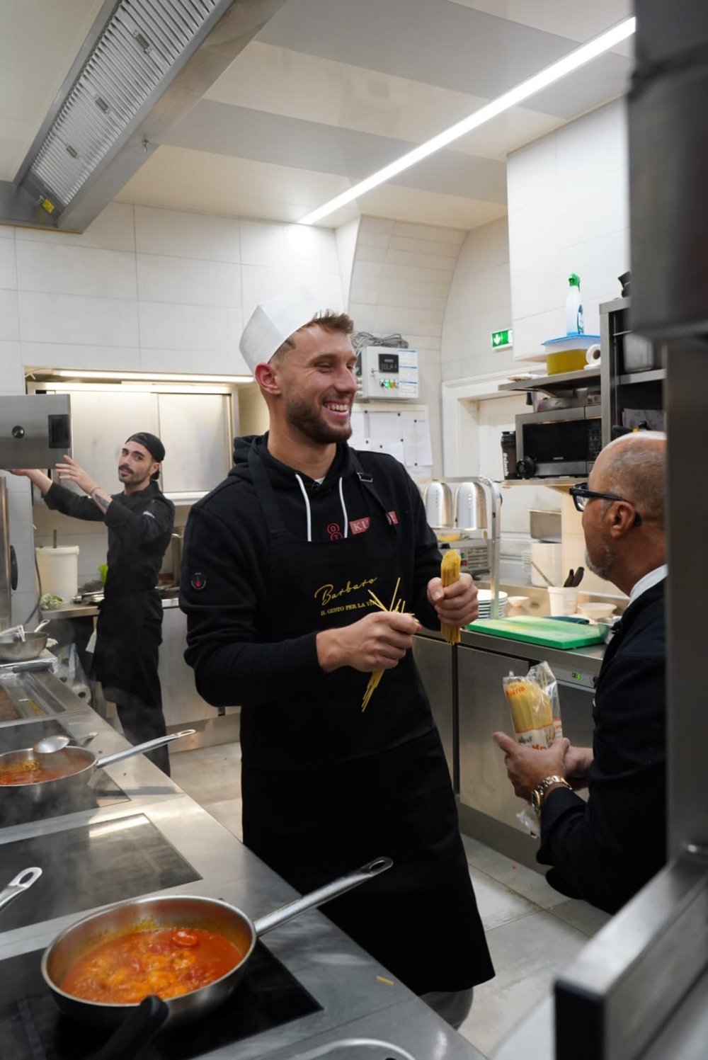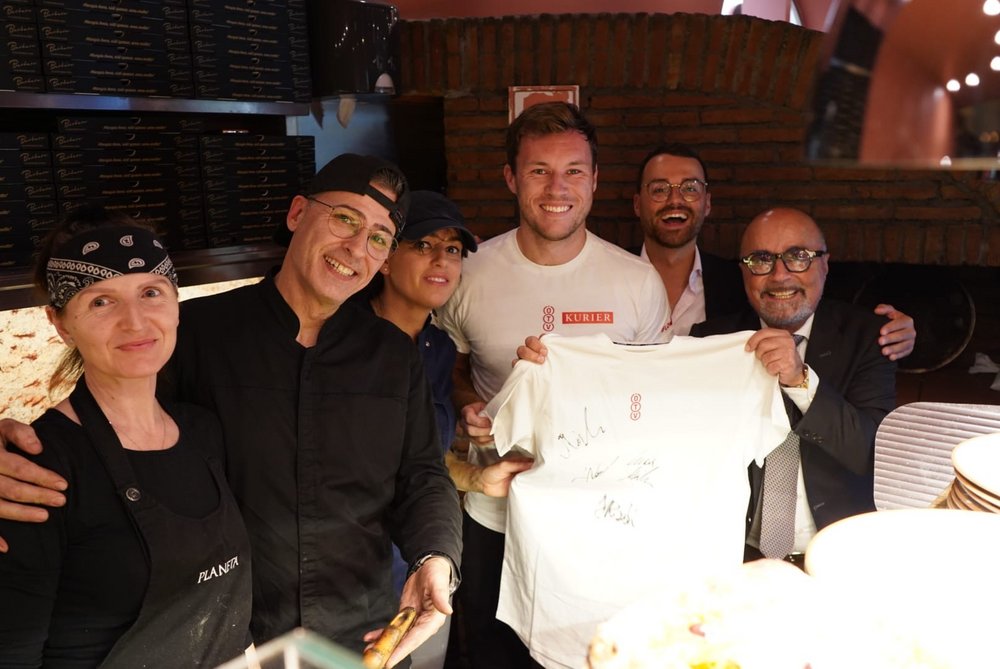 Dazu stattete die ÖTV-Mannschaft, angeführt durch ÖTV-Sportdirektor und -Davis-Cup-Kapitän Jürgen Melzer, am Rande der Erste Bank Open in Wien am Sonntag der Pizzeria Regina Margherita in der Innenstadt einen Besuch ab und legte eine Trainingseinheit der etwas anderen Art hin. Einzig Alexander Erler ließ sich entschuldigen, konnte jedoch mit dem an diesem Tag gewonnenen Doppelfinale beim ATP-250-Turnier in Stockholm einen triftigen Abwesenheitsgrund für diese Trainingssession anführen. Die Hausherren Luigi Barbaro sen. und Luigi Barbaro jun. nahmen sich in ihrem Lokal Österreichs Tennisassen persönlich an. Unter ihrer fachmännischer Anleitung versuchte sich dabei zunächst Filip Misolic, unterstützt von seinen Teamkameraden, an originalen Spaghetti Bolognese, ehe Lucas Miedler in die Kunst des Pizzabackens eingeführt wurde – was doch die eine oder andere unerwartete Challenge mit sich brachte. Aber aller guten Dinge sind bekanntlich drei: Nach zwei verkohlten Exemplaren klappte auch das und die Pizza durfte die Küche verlassen und den Gästen durch Miedler selbst serviert werden.