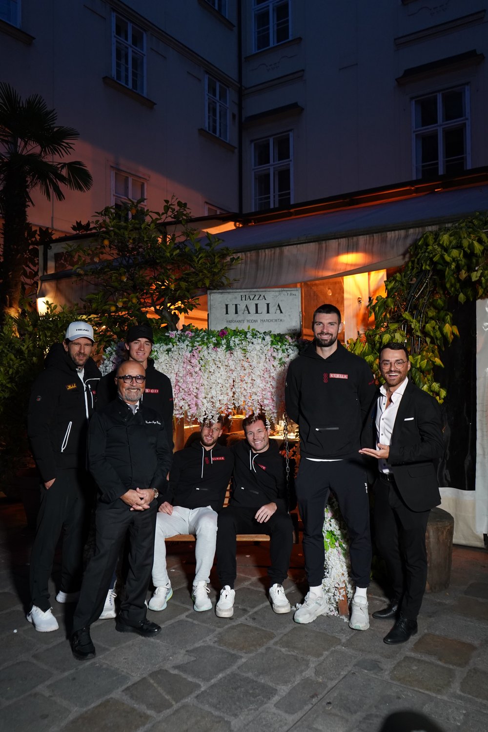 Das KURIER Austria Davis Cup Team stimmt sich in der Pizzeria Regina Margherita kulinarisch auf Bologna ein.