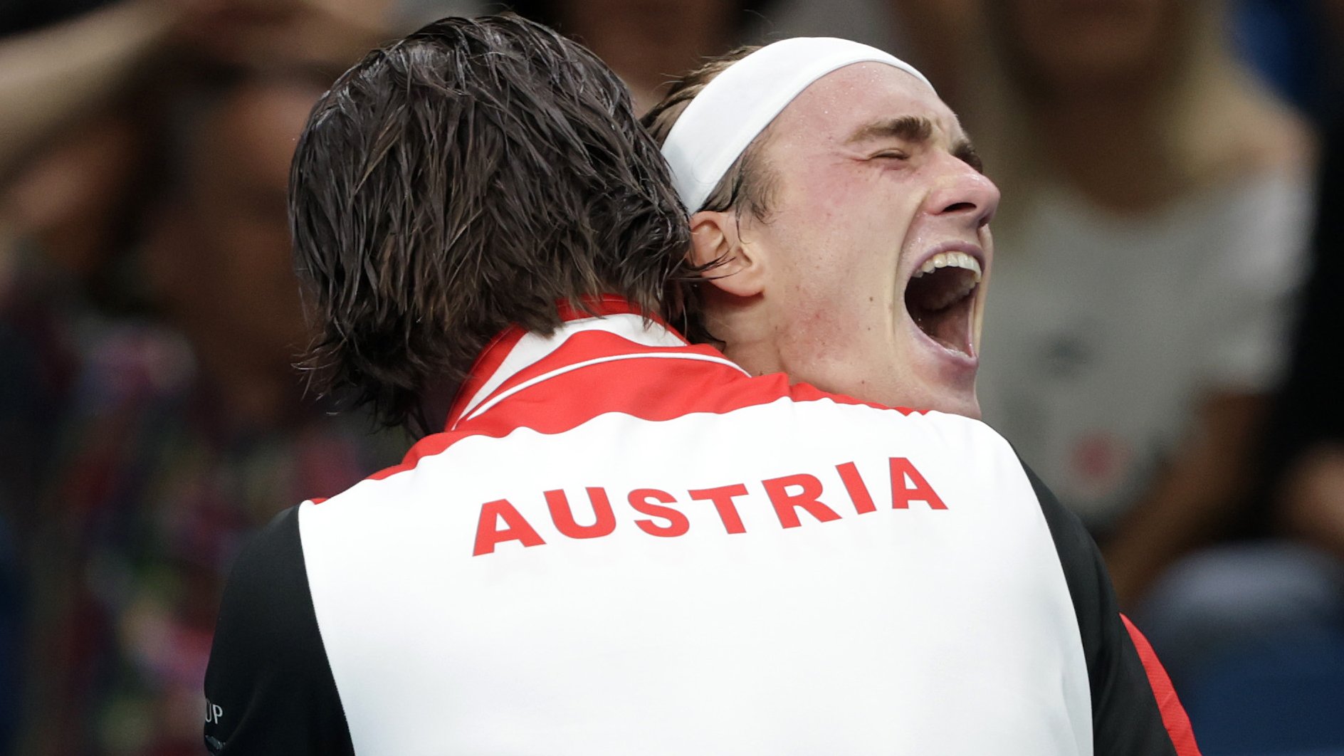 Lukas Neumayer ist nach dem Davis-Cup-Triumph in Ungarn beim Heim-Challenger von Bad Waltersdorf zu sehen.